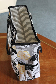 So I was getting tired of my old diaper bag and Eric attempted to buy me a new one over Christmas that I wasn't super excited about...(it was a nice thought, I just had something specific in mind). So I started browsing Pintrest for some inspiration and found a tutorial that I really liked. Now I'm not very talented when it comes to sewing, but luckily I am living with my very talented Mother who was able to whip this beauty up for me!!! The tutorial wasn't done very well so I know I would have destroyed the poor bag, but Mom did such an awesome job and I am thrilled with how it turned out!!! Thank you Mom, you are the BEST!